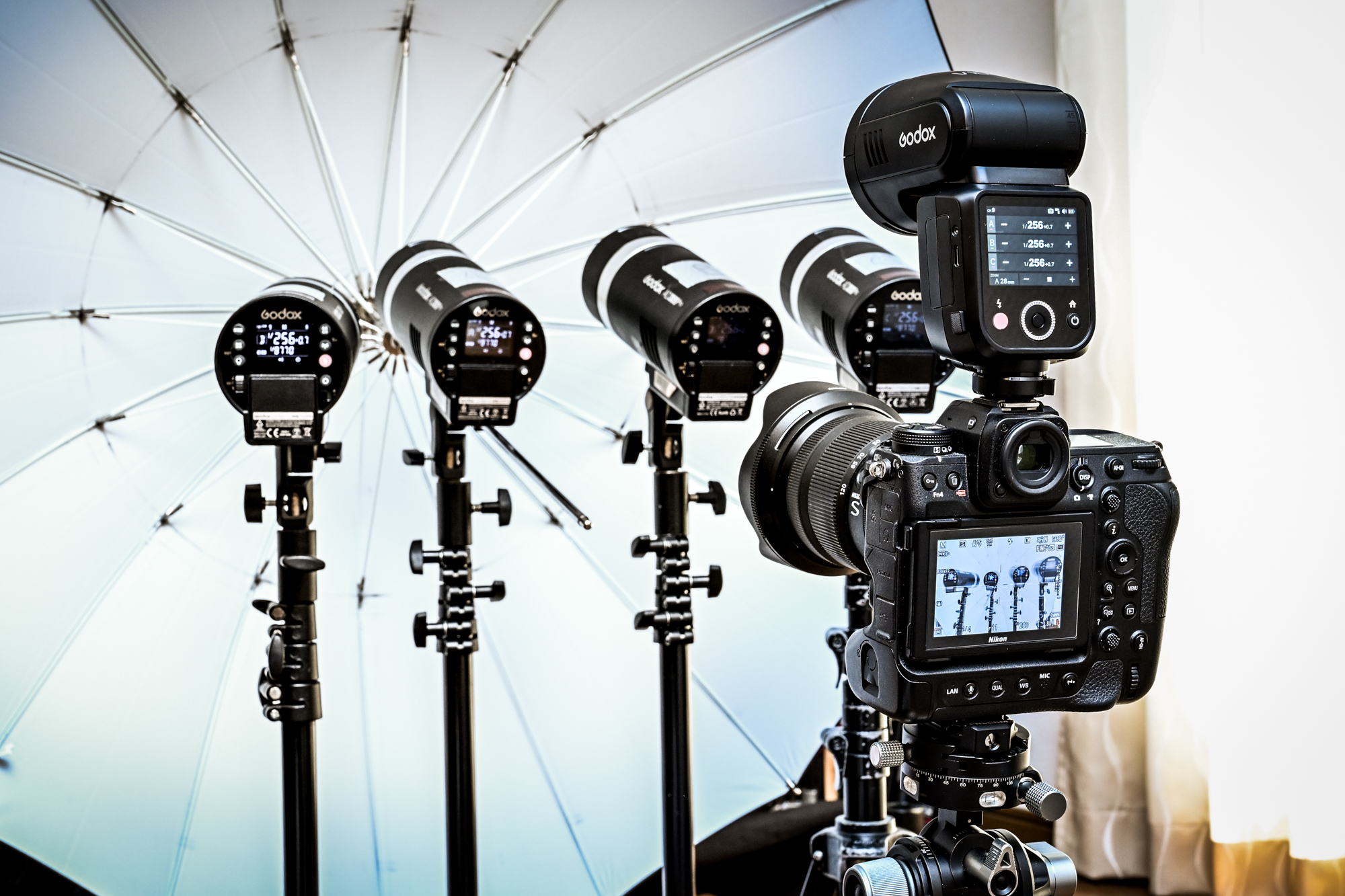 今回はGodoxV100をコマンダーにして、AD300Proを4灯発光させてみました。